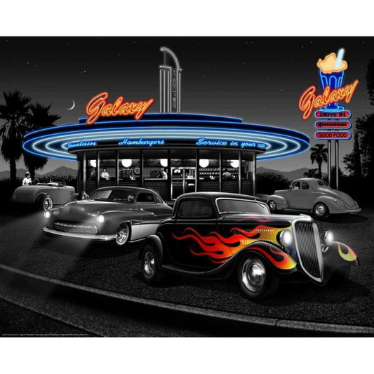 Galaxy Diner White Modern Wood Framed Art Print by Flint, Helen
