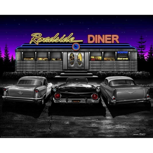 Roadside Diner White Modern Wood Framed Art Print by Flint, Helen