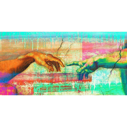 Michelangelos Creation of Adam 2.0 - detail White Modern Wood Framed Art Print by Chestier, Eric