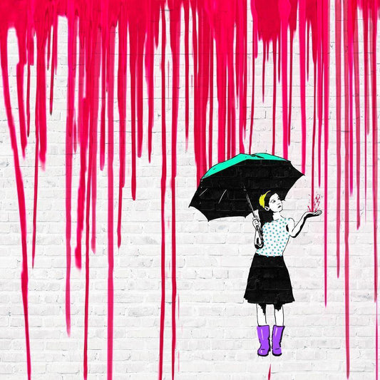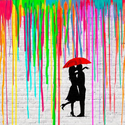 Romance in the Rain (detail) White Modern Wood Framed Art Print by Masterfunk Collective