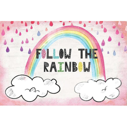 Follow the Rainbow White Modern Wood Framed Art Print by ND Art