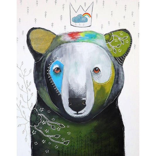 Native Bear White Modern Wood Framed Art Print by Timbrook, Natalie