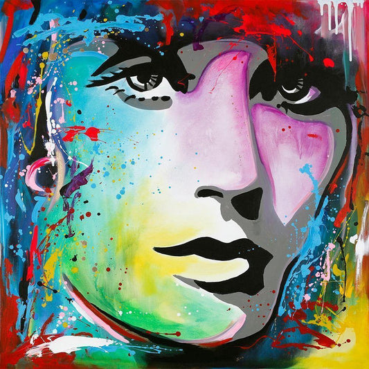 Miss Indognito Does Pointillism White Modern Wood Framed Art Print by Marshall, Lucy