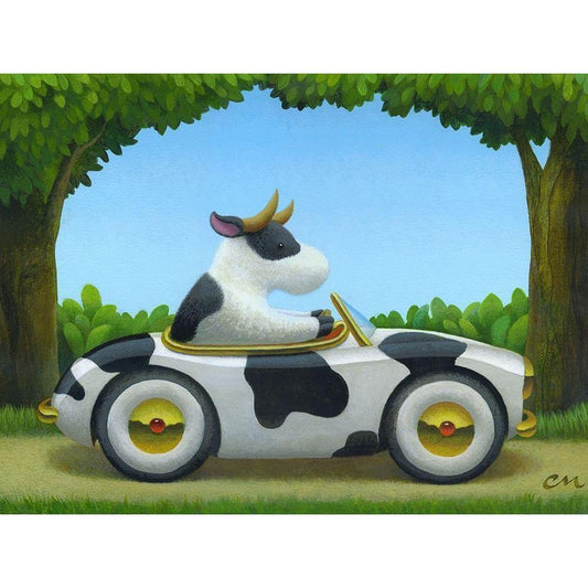 Cow Car White Modern Wood Framed Art Print by Miles, Chris
