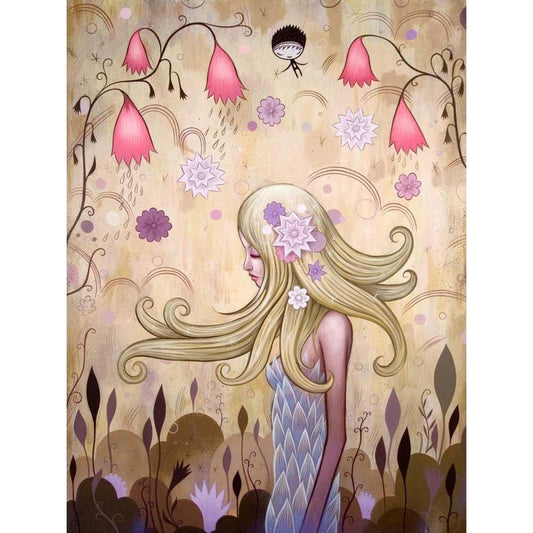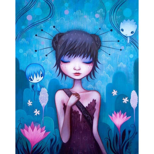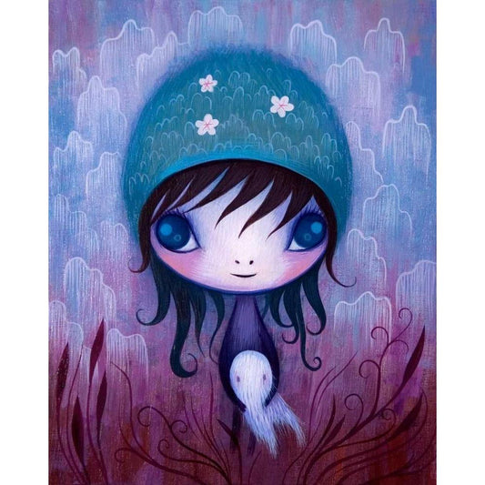 Girl with Pearl Earring and Pole White Modern Wood Framed Art Print by Kite, Barry