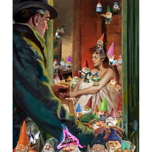 Garden Gnomes - VJ Day White Modern Wood Framed Art Print by Kite, Barry