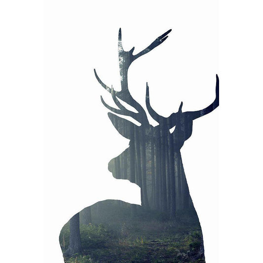 Forest Deer Silhouette White Modern Wood Framed Art Print by Incado