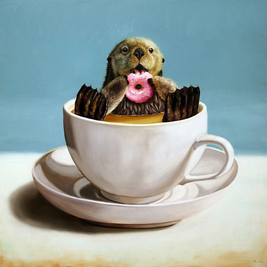 Otterly Delicious White Modern Wood Framed Art Print by Heffernan, Lucia