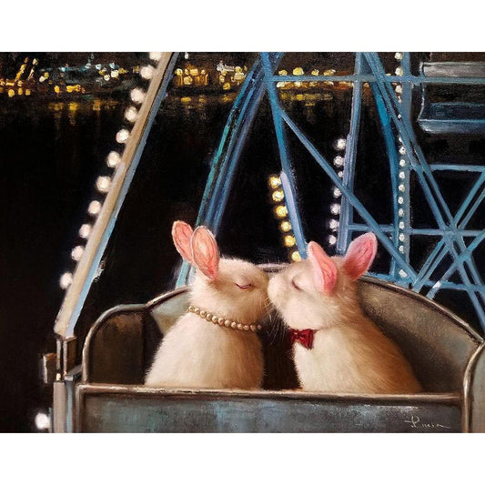 First Kiss White Modern Wood Framed Art Print by Heffernan, Lucia