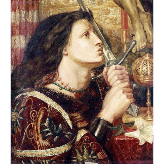 Joan of Arc Kissing The Sword of Deliverance White Modern Wood Framed Art Print by Rossetti, Dante Gabriel