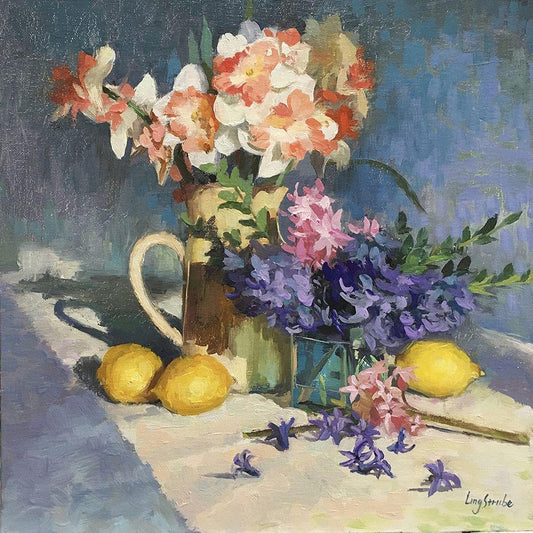 Primrose Still Life Gold Ornate Wood Framed Art Print with Double Matting by Strube, Ling