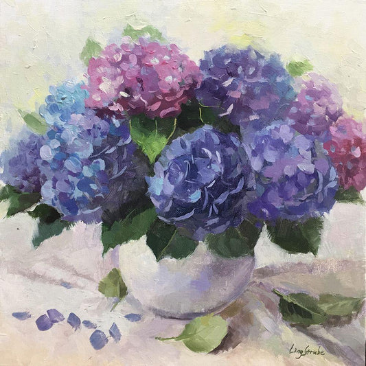 Hydrangeas in Vase Gold Ornate Wood Framed Art Print with Double Matting by Strube, Ling