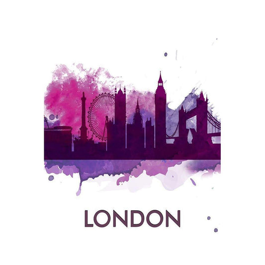 PURPLE SILHOUETTE OF LONDON Gold Ornate Wood Framed Art Print with Double Matting by Atelier B Art Studio