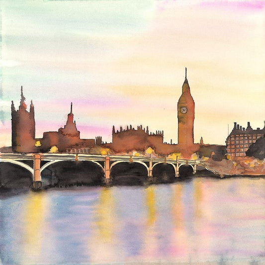 SUNSET ON THE BIG BEN Gold Ornate Wood Framed Art Print with Double Matting by Atelier B Art Studio