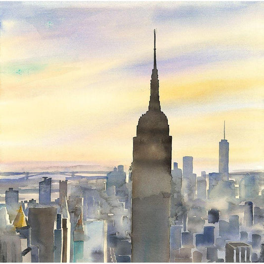 Colorful Cityscape of Manhattan Gold Ornate Wood Framed Art Print with Double Matting by Atelier B Art Studio