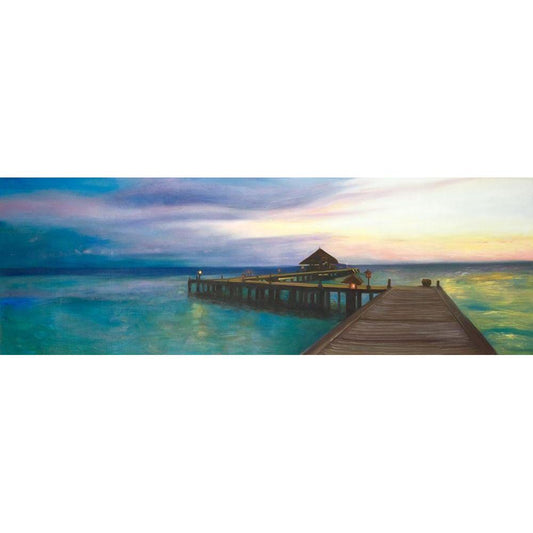 BOARDWALK WITH SUNSET Gold Ornate Wood Framed Art Print with Double Matting by Atelier B Art Studio
