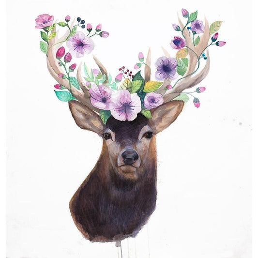 ROE DEER HEAD WITH FLOWERS Gold Ornate Wood Framed Art Print with Double Matting by Atelier B Art Studio
