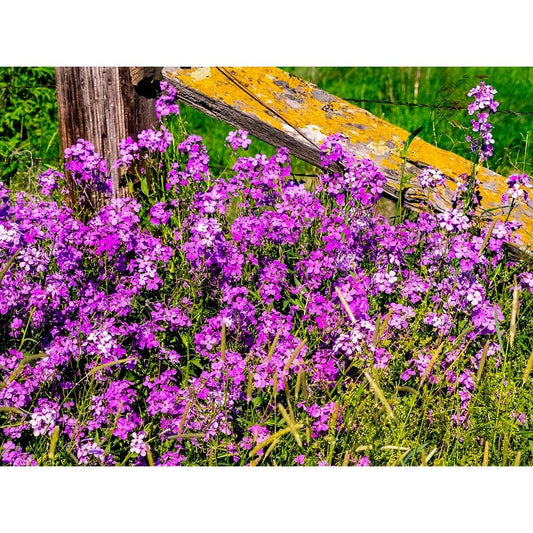 USA-Washington State-Palouse Lichen covered fence post surrounded by dollar plant flowers Gold Ornate Wood Framed Art Print with Double Matting by Gulin, Sylvia