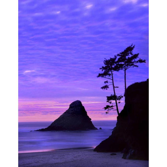 OR, Crescent moon framed by sea stacks Gold Ornate Wood Framed Art Print with Double Matting by Rotenberg, Nancy