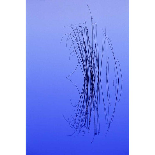 MI, Cluster of soft rushes reflects in a lake Gold Ornate Wood Framed Art Print with Double Matting by Carlson, Mark