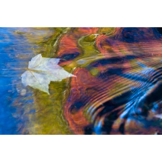 MI, Maple leaf and fall reflections in Bond Falls Gold Ornate Wood Framed Art Print with Double Matting by Rotenberg, Nancy