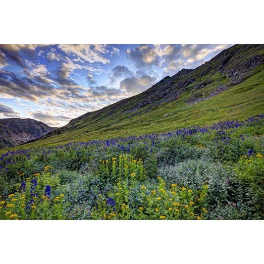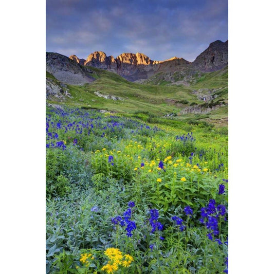 Colorado, San Juan Mts, flowers in American Basin Gold Ornate Wood Framed Art Print with Double Matting by Flaherty, Dennis