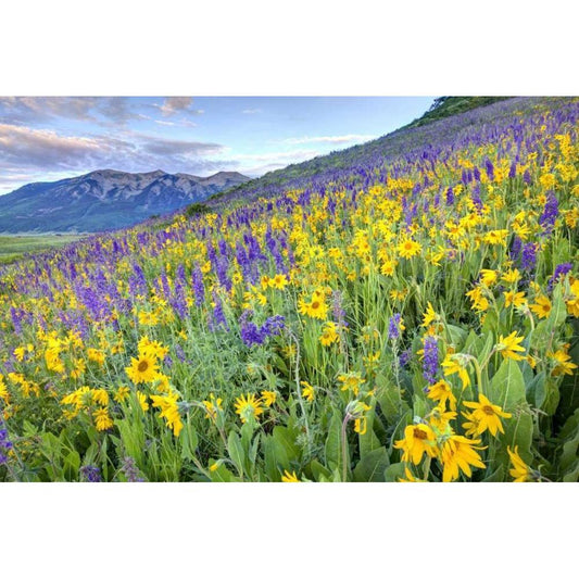 CO, Crested Butte Flowers on hillside Gold Ornate Wood Framed Art Print with Double Matting by Flaherty, Dennis