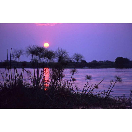 Kenya Sunset reflects on water through reeds Gold Ornate Wood Framed Art Print with Double Matting by Williams, Joanne
