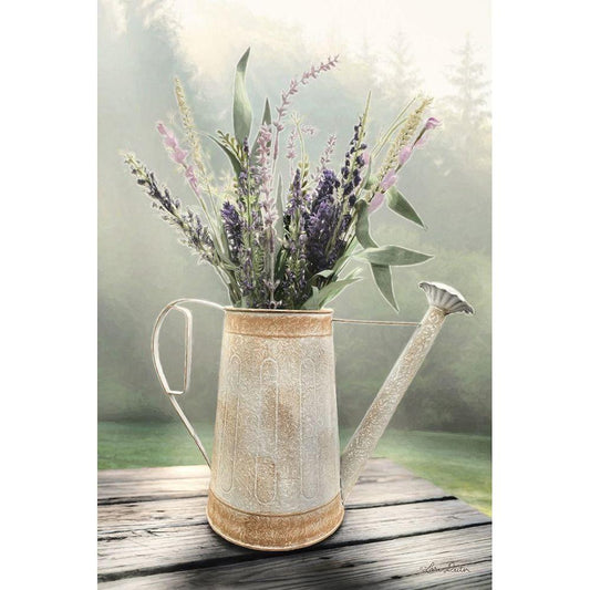 Lavender Watering Can Gold Ornate Wood Framed Art Print with Double Matting by Deiter, Lori