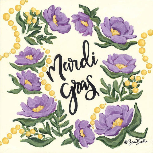 Floral Mardi Gras Gold Ornate Wood Framed Art Print with Double Matting by Baker, Sara