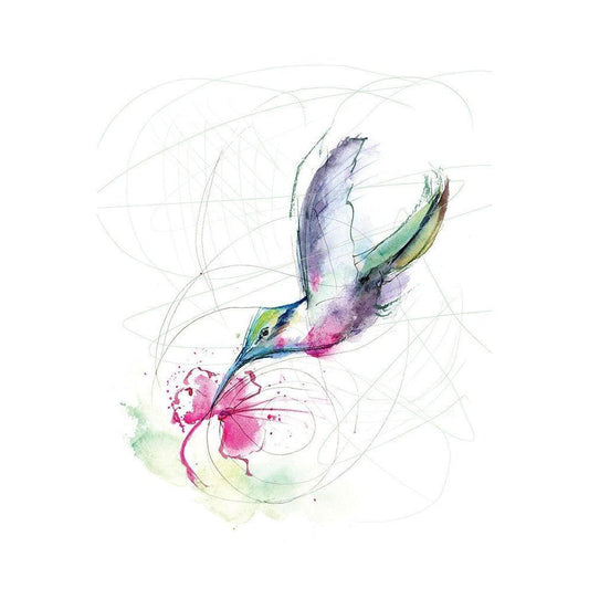 Pink Flower Hummingbird Gold Ornate Wood Framed Art Print with Double Matting by Shefranov, Olga