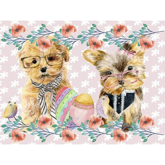 Easter Pups Collection E Gold Ornate Wood Framed Art Print with Double Matting by Wang, Melissa