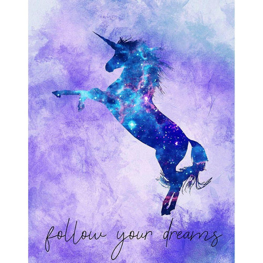 Follow your Dreams Unicorn Purple Gold Ornate Wood Framed Art Print with Double Matting by Kimberly, Allen