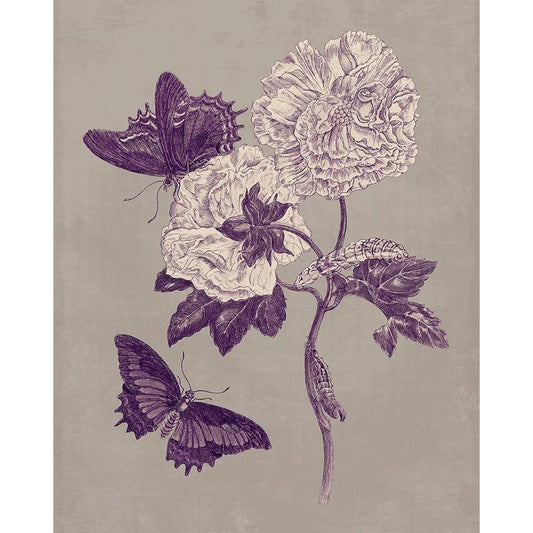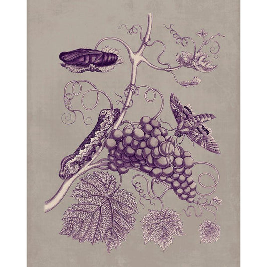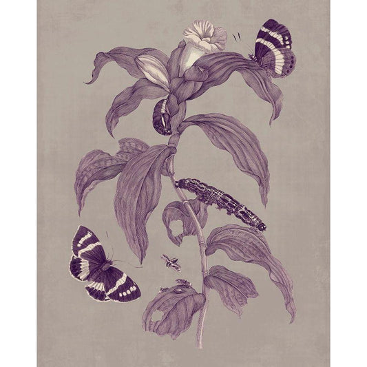 Nature Study in Plum and Taupe II Gold Ornate Wood Framed Art Print with Double Matting by Merian, Maria S.