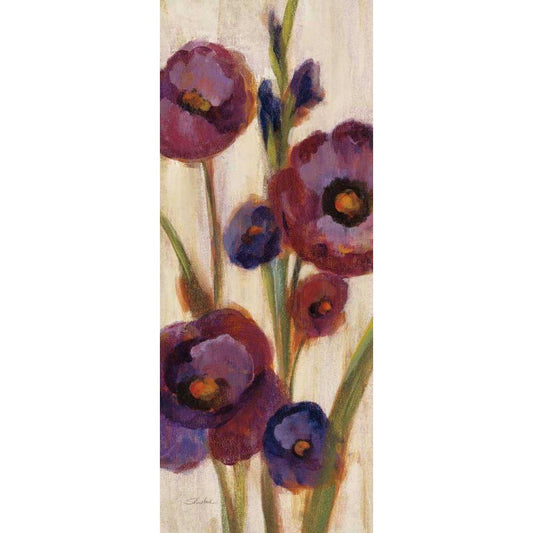 Purple Poppies Windowsill Crop Gold Ornate Wood Framed Art Print with Double Matting by Nai, Danhui