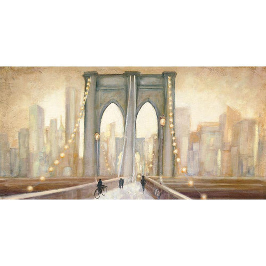 Bridge to New York Dusk Gold Ornate Wood Framed Art Print with Double Matting by Purinton, Julia
