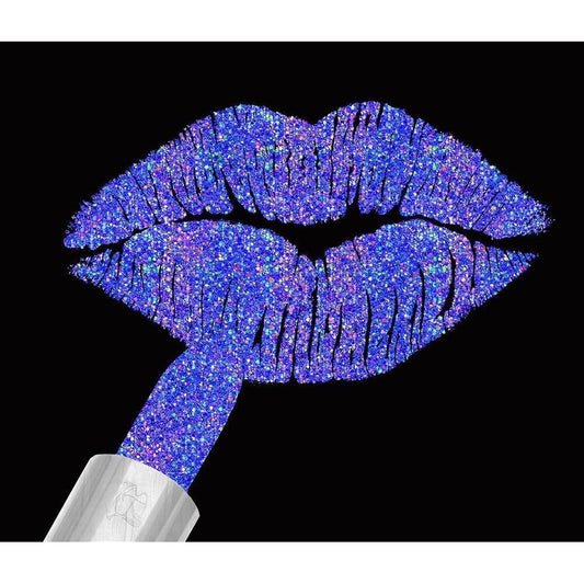 Iridescent Glitter Lips Purple Gold Ornate Wood Framed Art Print with Double Matting by Lavoie, Tina