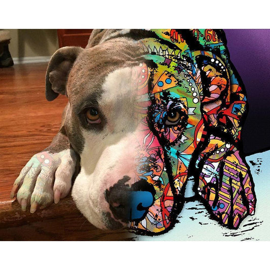 Pittie Pup Gold Ornate Wood Framed Art Print with Double Matting by Dean Russo Collection