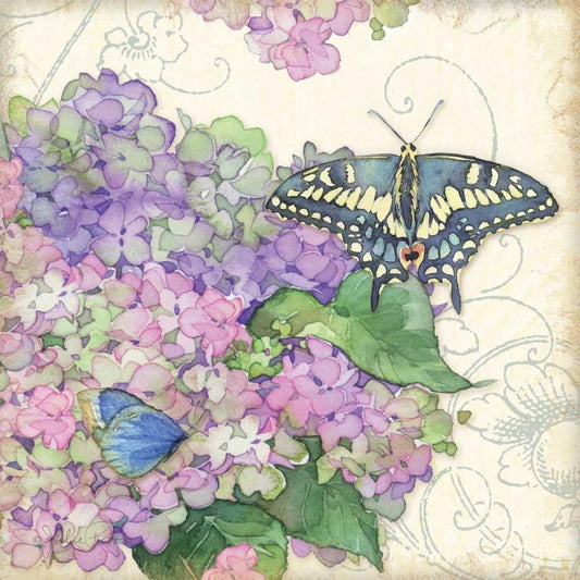 Hydrangea and Butterflies Gold Ornate Wood Framed Art Print with Double Matting by Paton, Julie