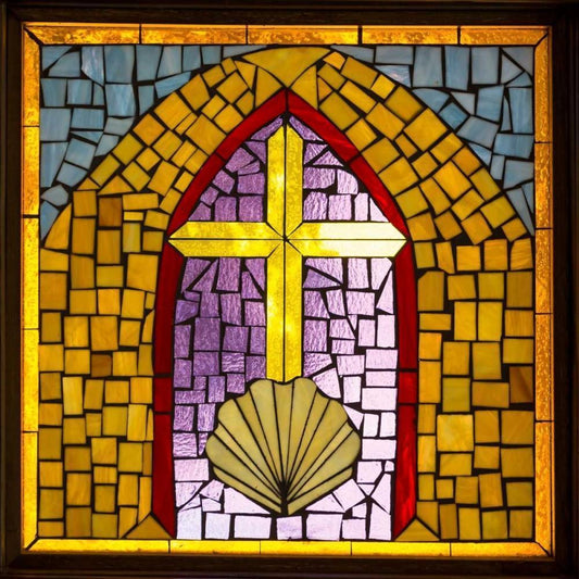Stained Glass Cross VI Gold Ornate Wood Framed Art Print with Double Matting by Mahan, Kathy