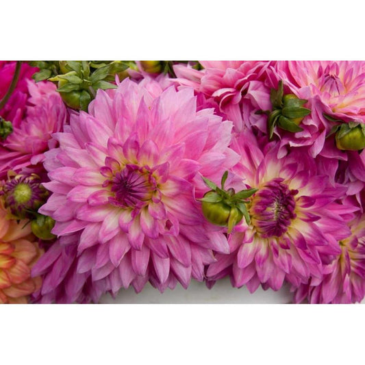 Fuschia Dalhia II Gold Ornate Wood Framed Art Print with Double Matting by Love, Maureen