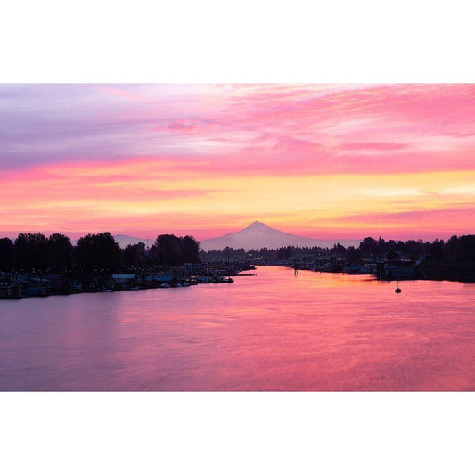 Columbia River Sunrise Gold Ornate Wood Framed Art Print with Double Matting by Hellmann, Stan
