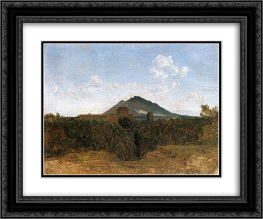Civita Castellana and Mount Soracte 24x20 Black Ornate Wood Framed Art Print Poster with Double Matting by Corot, Jean Baptiste Camille