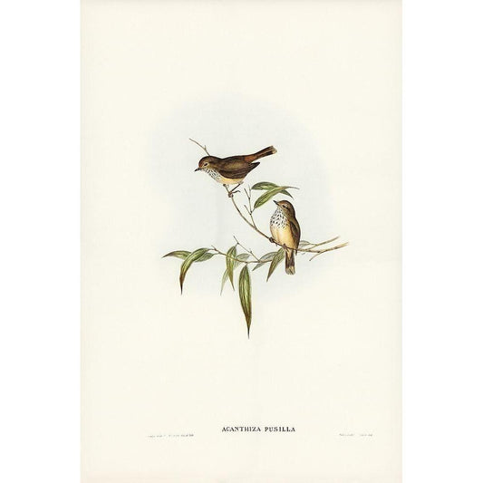 Little Brown Acanthiza-Acanthiza pusilla Gold Ornate Wood Framed Art Print with Double Matting by Gould, John