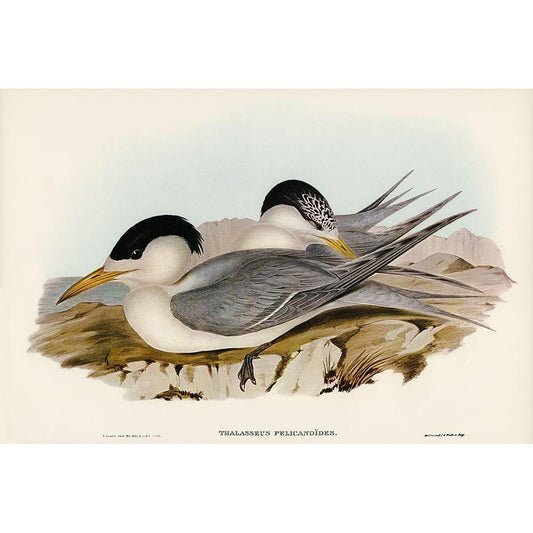 Torres Straits Tern-Thalasseus Pelecanoides Gold Ornate Wood Framed Art Print with Double Matting by Gould, John