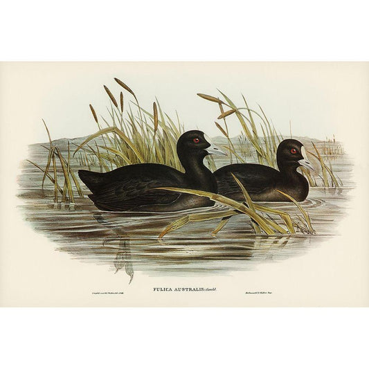 Australian Coot-Fulica Australis Gold Ornate Wood Framed Art Print with Double Matting by Gould, John