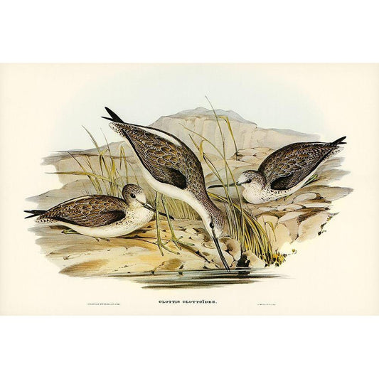 Australian Greenshank-Glottis Glottoides Gold Ornate Wood Framed Art Print with Double Matting by Gould, John
