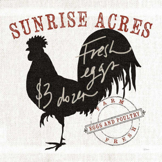 Farm Linen Rooster Black Gold Ornate Wood Framed Art Print with Double Matting by Schlabach, Sue