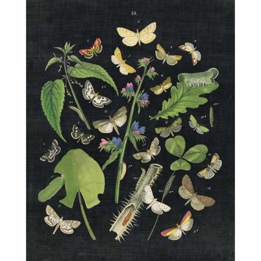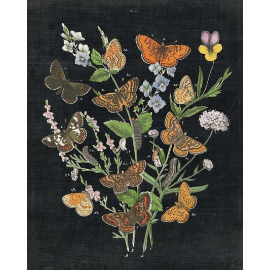Butterfly Bouquet on Black III Gold Ornate Wood Framed Art Print with Double Matting by Wild Apple Portfolio
