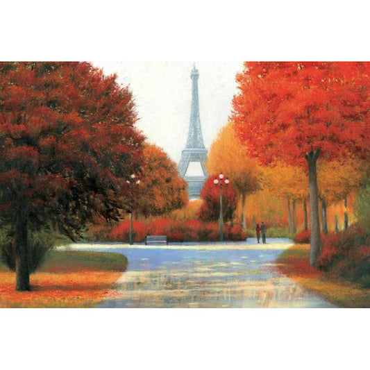 Autumn in Paris Couple Gold Ornate Wood Framed Art Print with Double Matting by Wiens, James
